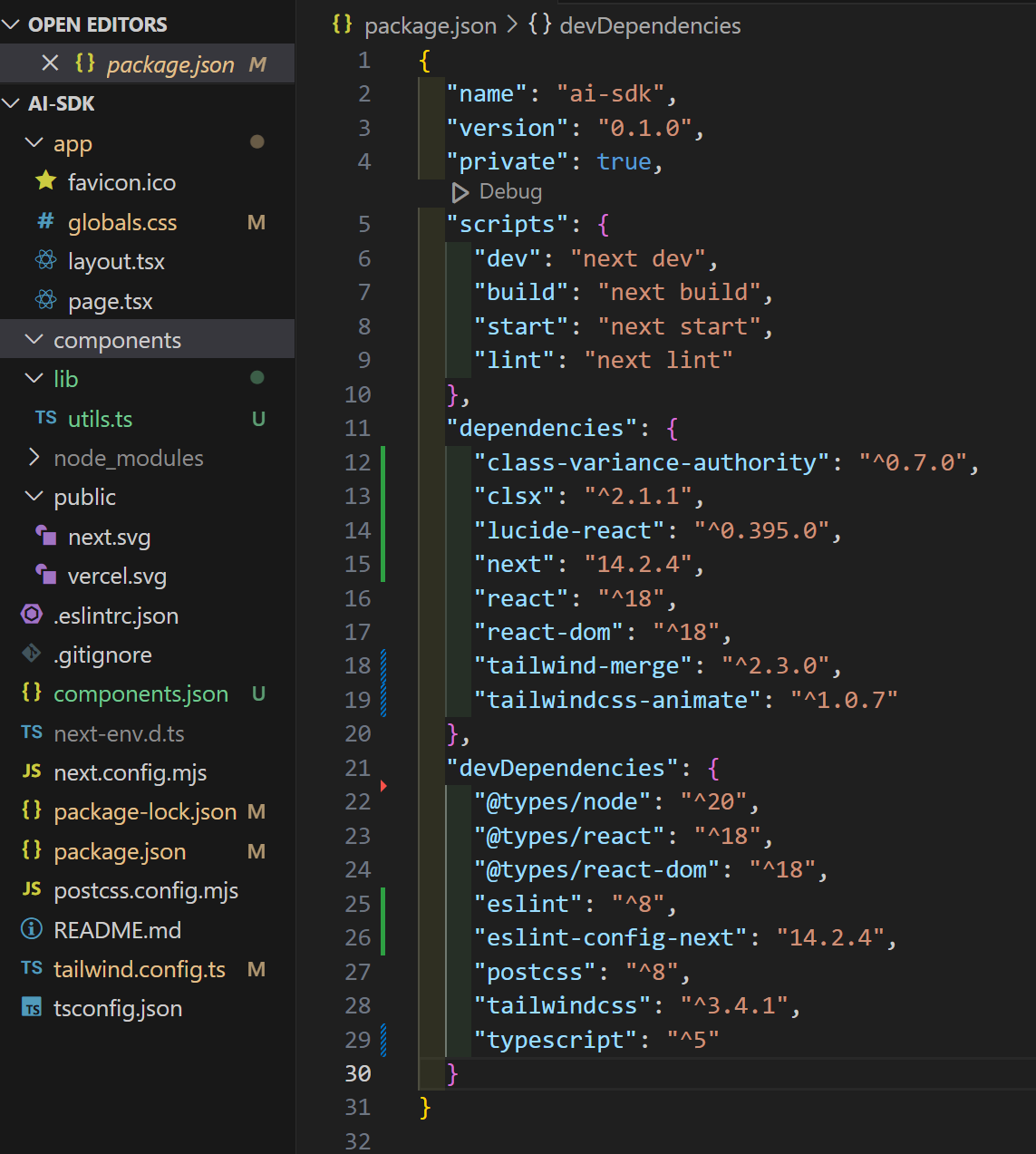 PS D:\ai\ai-sdk> npx create-next-app@latest . --typescript --tailwind