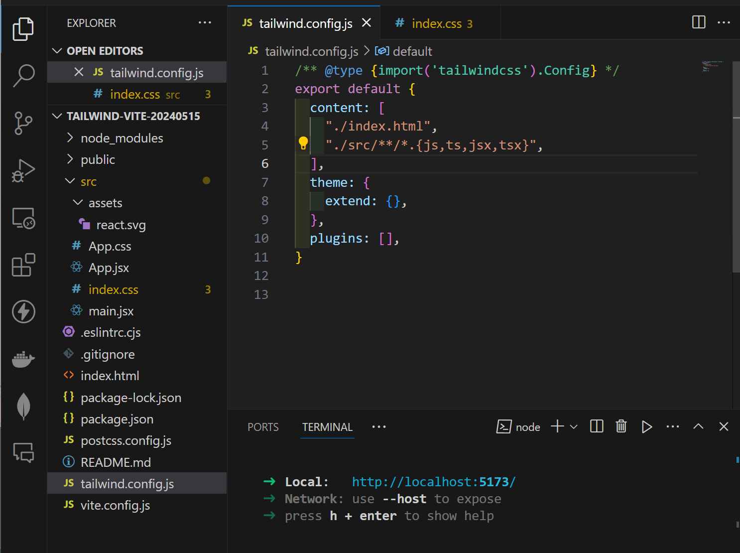 2. npx tailwindcss init -p // tailwind.config.js 만듬