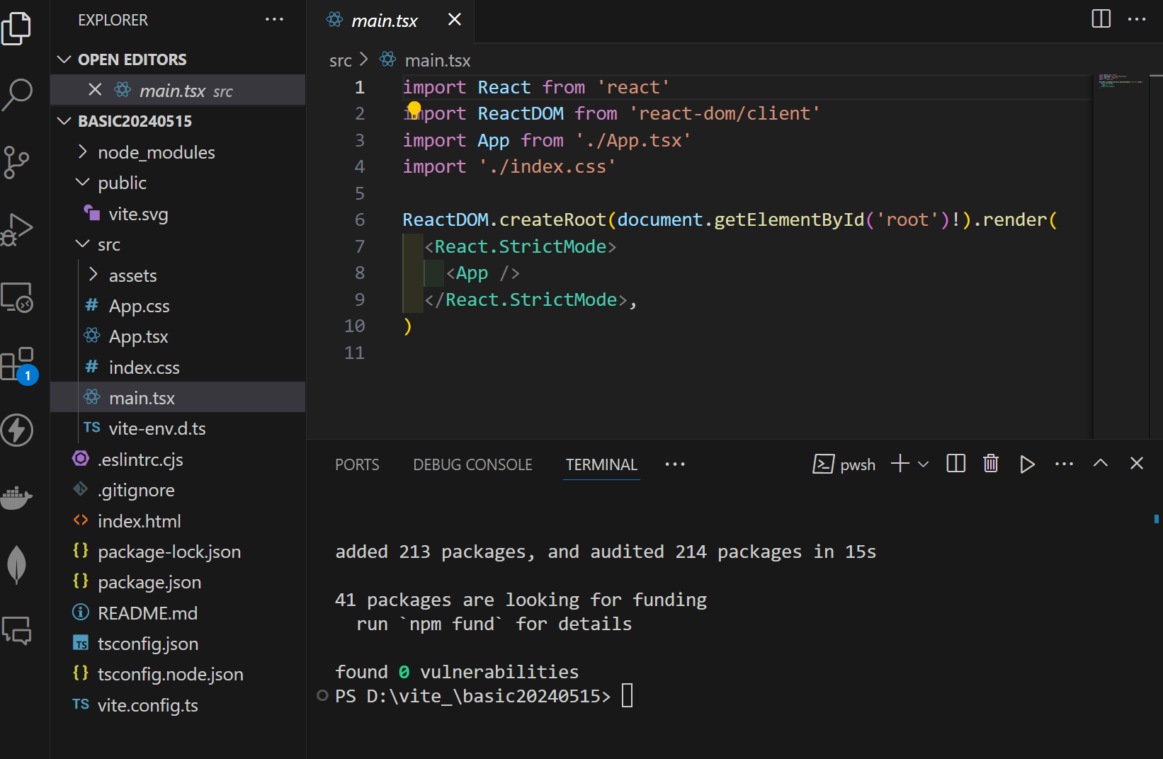 - assets 폴더에는 react.svg 로고 하나 있음